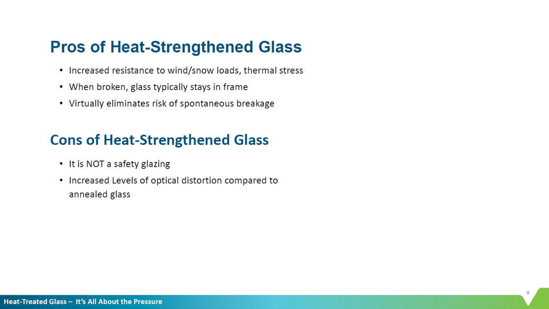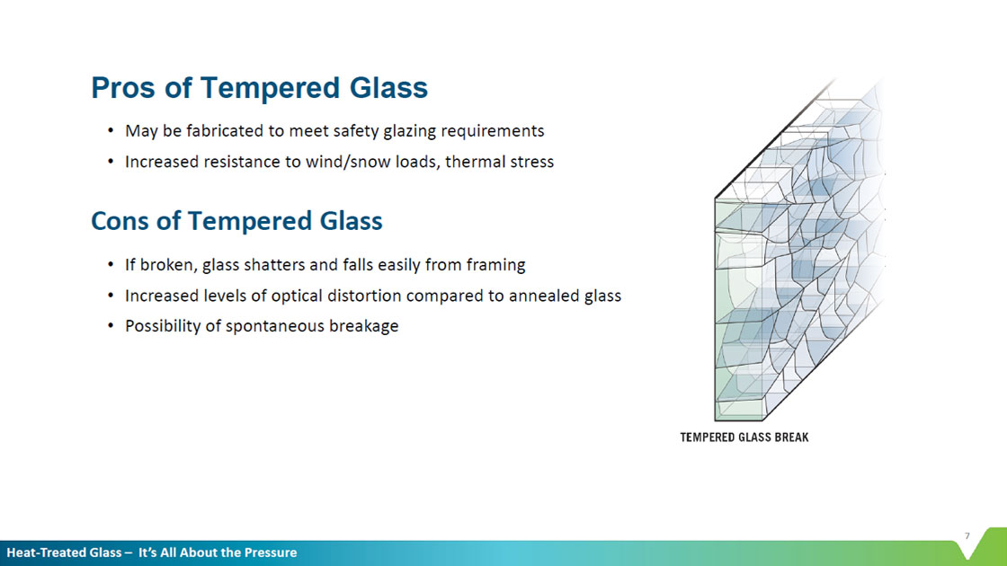 When designing with large expanses of glass, it is critical to know when the glass may need to be heat-treated for durability and/or safety. The type of processing required—heat strengthening or tempering—depends on the specific application.